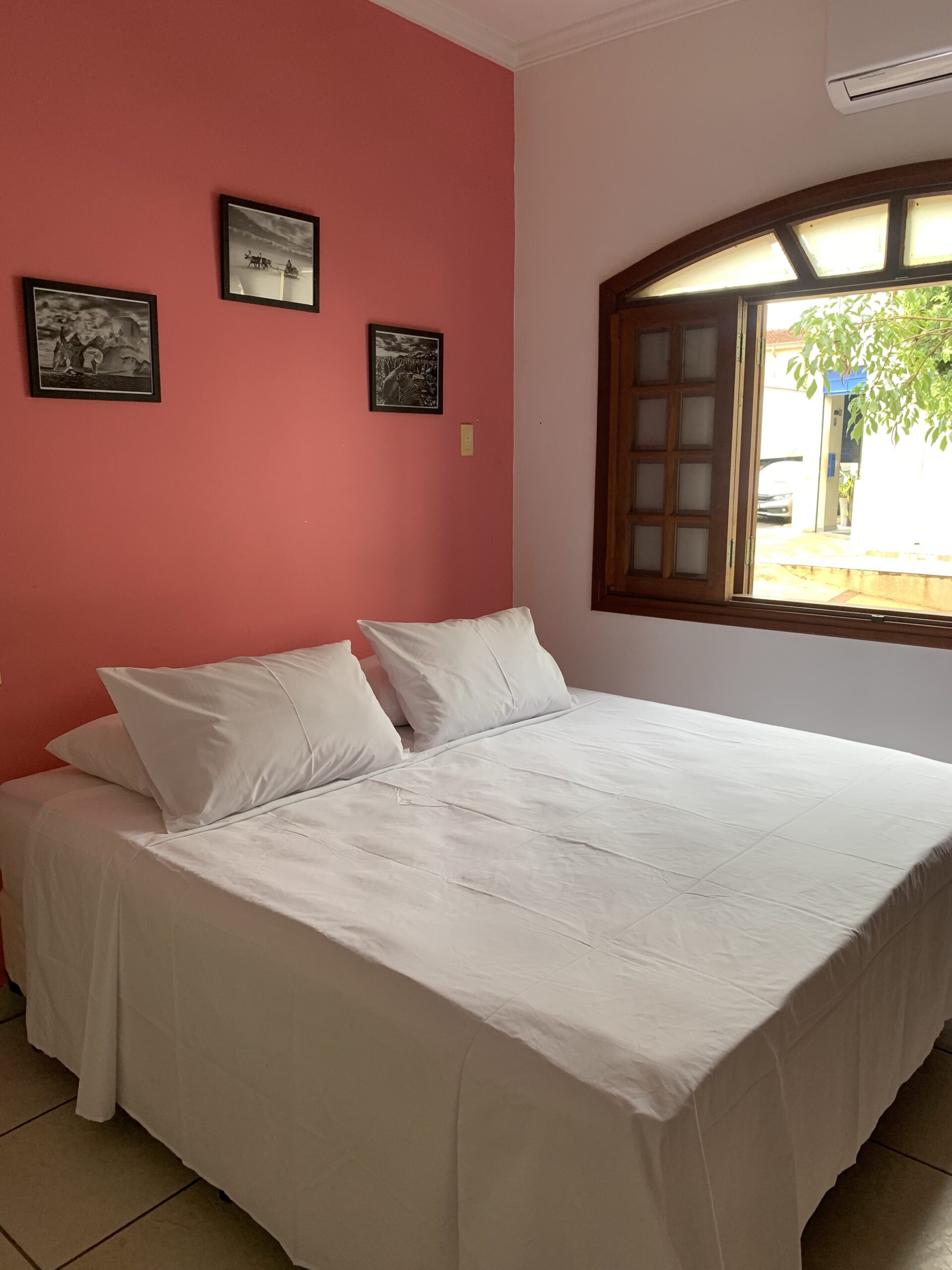 quarto com capacidade para até quatro pessoas, janela com vista para rua latera
